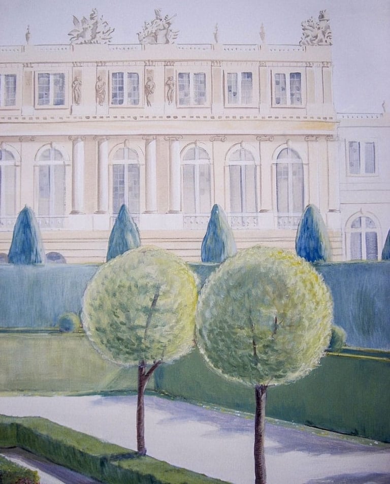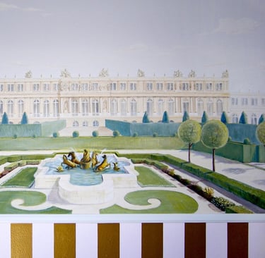 A hand-painted dreamscape of the Palace of Versailles, created for a little girl’s own enchanted garden room