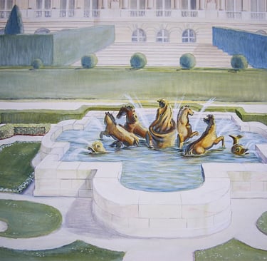 The Apollo fountain, painted in joyfully. A touch of whimsy in a royal nursery