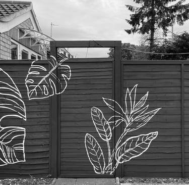 "Thanks to the talented Stefanie who painted stunning tropical plant murals on our patio garden fence. Her work exceeded expectations, transforming our rental property's garden into a standout feature. Highly recommended for anyone looking to add unique charm and vibrancy."
