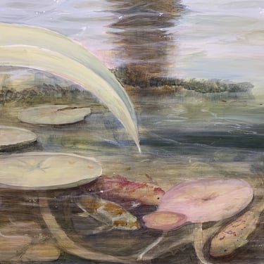 Still water, shifting light, and the quiet symmetry of reflection—holding the room in a slow, steady exhale.